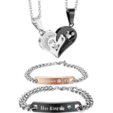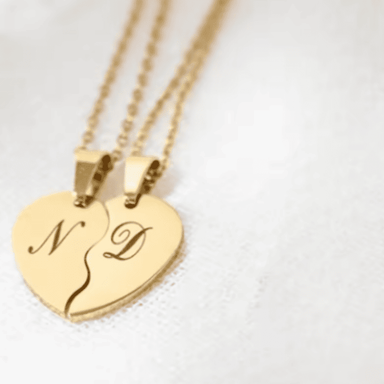 Our couples' necklaces are made from stainless steel, sterling silver, and premium gold plating for durability and style.